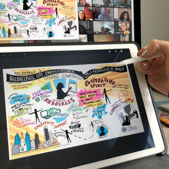 Chrissie is a facilitator, teacher, author, and illustrator. Her interest in visual work is rooted in cultivating the mindsets necessary for transformative change and designing environments for people to be creative and do their best thinking.