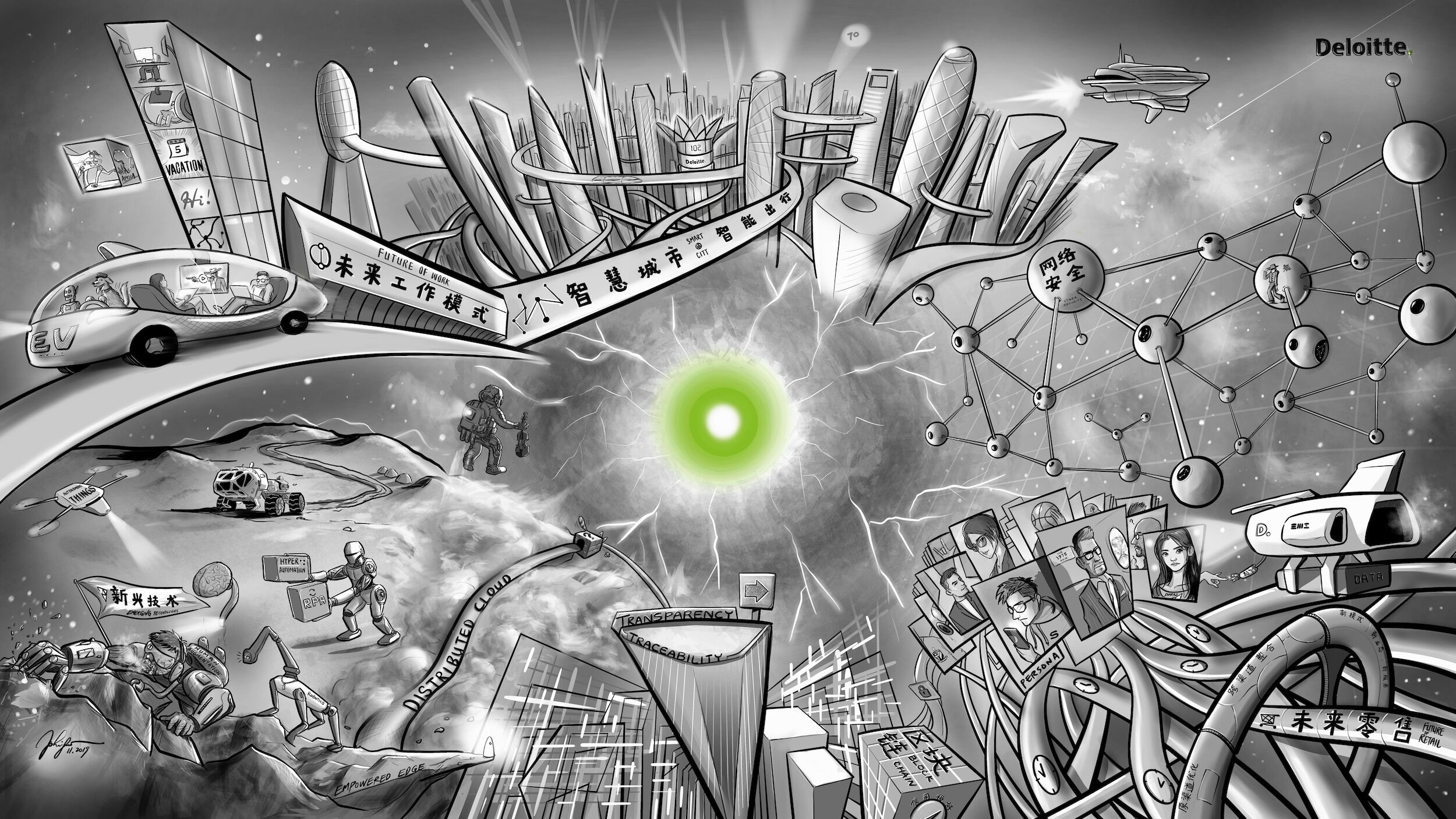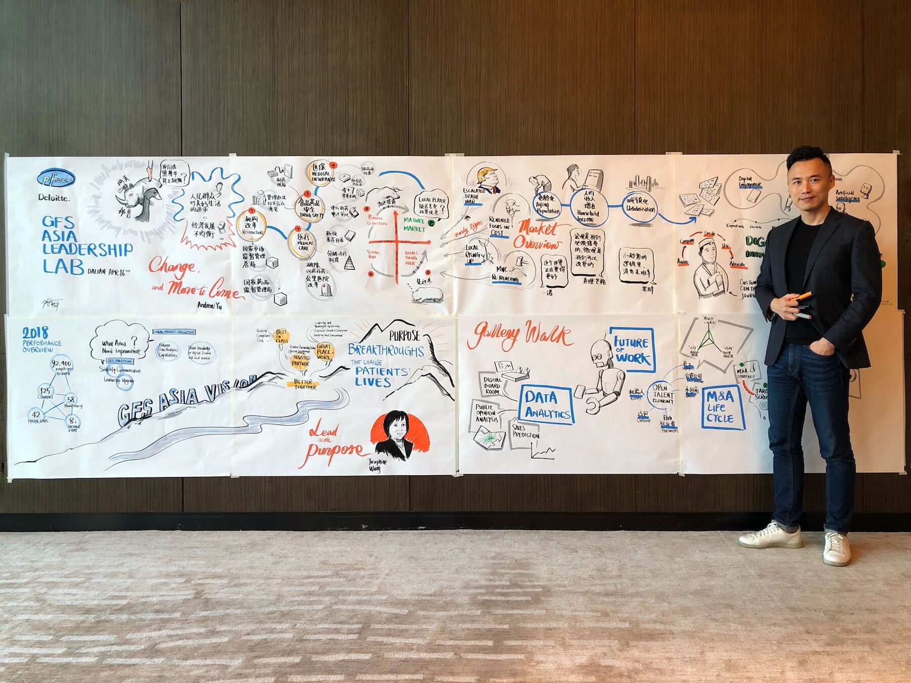 Phil (Jinglun) Guo is passionate about creating business+art synthesis, a practitioner of human-centered design, a human capital consultant, and a visual facilitator who blends technology with arts.