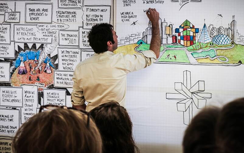 As a child I already knew it... I wanted to be an illustrator but somewhere along the way I ended up in the technology industry. A big part of my professional life I spent with Hewlett-Packard (HP) in various management and sales positions, until I bumped into the Envision team. The HP Envision team was a business transformation practice running visually facilitated strategy sessions for clients in the HP headquarters in Palo Alto, Silicon Valley. I joined that team and it changed my life. I spent 4 years facilitating in the HP headquarters and executive briefing centres in the Bay Area, New York, Plano and London, helping their major clients and account teams create visions and plans to transform their businesses.