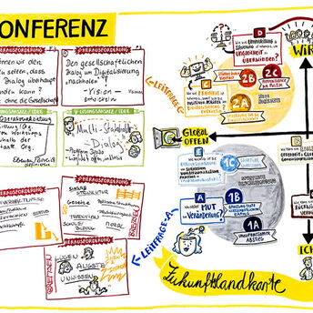 In the field of visualization, my abilities to listen well, to be able to process large amounts of information, my creativity, my ability to recognize patterns, to integrate perspectives and meta-views add to my work. The incorporation of visualization into existing processes as well as long-term thinking characterizes me as well. I am successful in my ability to convey complex issues in a comprehensible way through simple tools. I am author of the German book „Co-Create! Das Visualisierungs-Buch“, published by Wiley Publ.: www.das-visualisierungs-buch.de