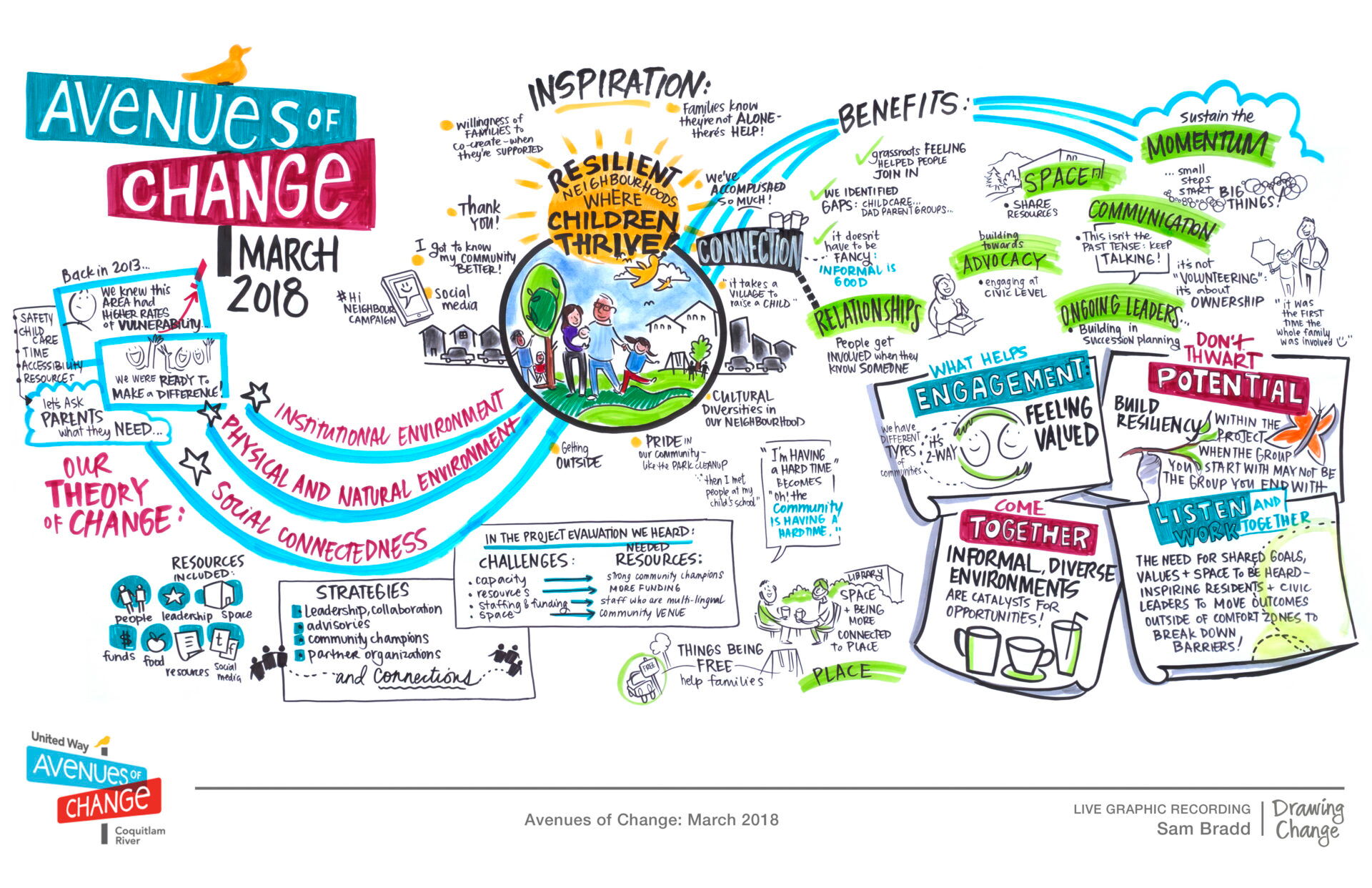 Drawing Change has deep expertise in strategic communications consulting, focusing on visuals for organizational development and systems change. Our visuals and ways of working synthesize complex information, sustain engagement, support problem-solving, and honour multiple ways of knowing. Our services include: