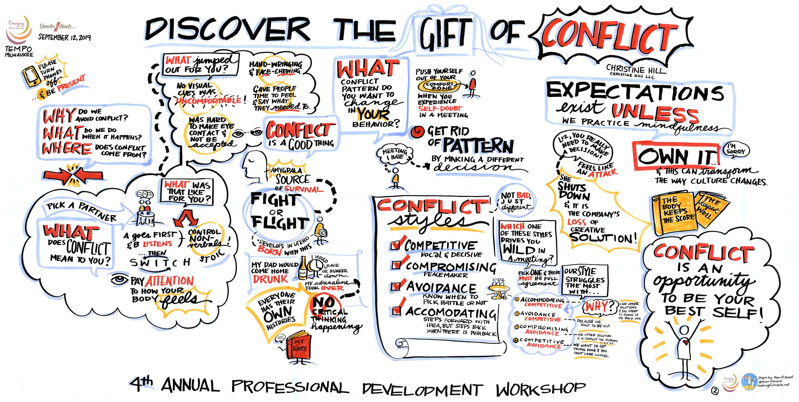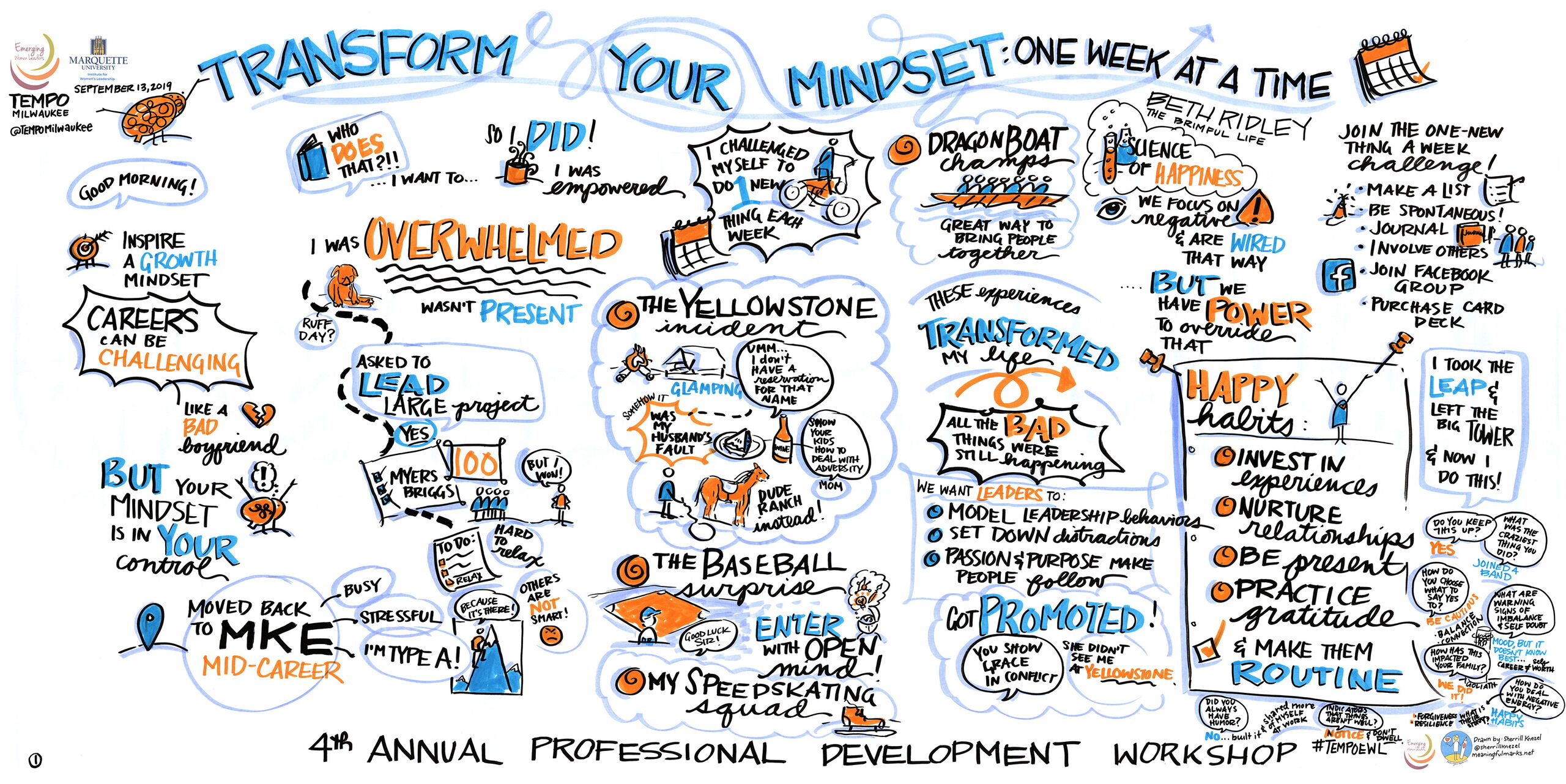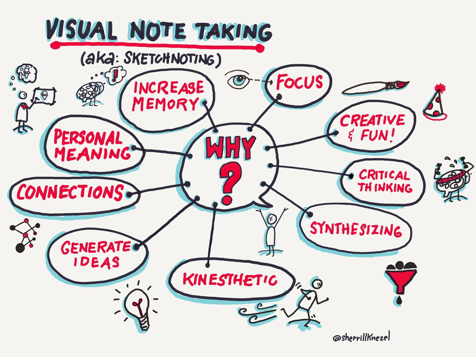 Hi, I'm Sherrill.MY MISSIONI work to create a better world by using visuals to uplift and amplify generative, inclusive, and transformative work being done in community.As a graphic recorder, I use images and text to capture the heart of your conversations, presentations, keynotes, meetings, and brainstorming sessions. Wherever people gather to share ideas. I help increase engagement, clarity, communication, and connection in your organization through listening, synthesizing, and drawing out the conversation in the room.MY STORYI have been a lifelong doodler and drawer in the margins. My background is in Studio Art/Art Education and I have a Master of Arts in Teaching. Insatiable curiosity as well as my love of drawing and listening led me to pursue graphic recording in 2014. As I learned more about the field of visual practitioners and the benefits of using visuals to enhance comprehension, recall, and connection, the teacher in me kept wondering, "Why aren't we teaching this in schools and beyond?!" My first foray into graphic recording was at faculty meetings and I knew right away that I would become an advocate for visual meetings from then on! Visuals help us connect on a human level and can change the energy in a room when all voices are heard and reflected in the drawings.I love leading workshops on visual note-taking, visual literacy, and graphic recording and am passionate about empowering others to think, work, and communicate visually.My passion is supporting organizations that are having conversations around generative and transformative change, visioning, connection, building trust, and gaining clarity. Visuals bring creativity, warmth, and humanity to virtual and in-person meetings. My work is informed by an inclusive, social justice lens and I work with individuals and organizations to create a better, more just world.Let’s work together to amplify your impact and create positive change!“When we truly listen to one another we are made more by the story we share.”— Sherrill Knezel
