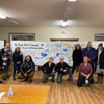 My work as a graphic recorder takes me across Canada and the North, where I get to capture diverse stories, ideas, and visions from communities. I have the privilege of visually documenting important conversations, often on topics like Truth and Reconciliation, innovation, social and economic development, healthcare and community building. It's an honour to help bring these ideas to life in a way that fosters understanding and connection.
